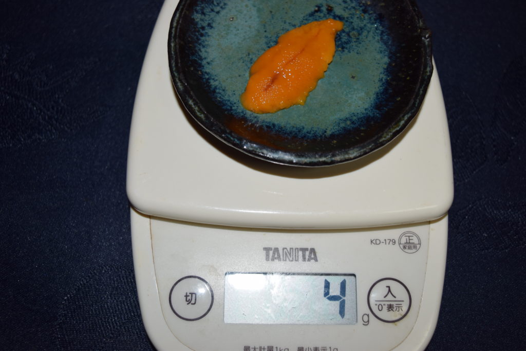 ウニ単体の重さは一房4g前後