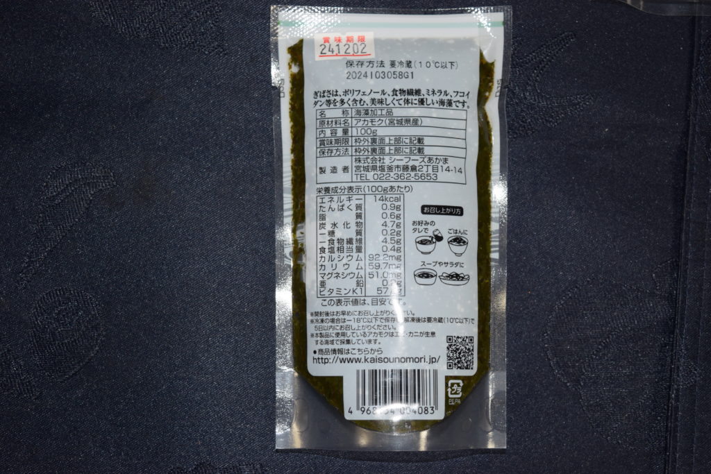 以前加工パックでない生の状態のアカモクも買って調理し、食べたこともありますが、それとの違い、加工パックの利点、他の海藻との違いなどを紹介しますので、良かったら見てみてください。