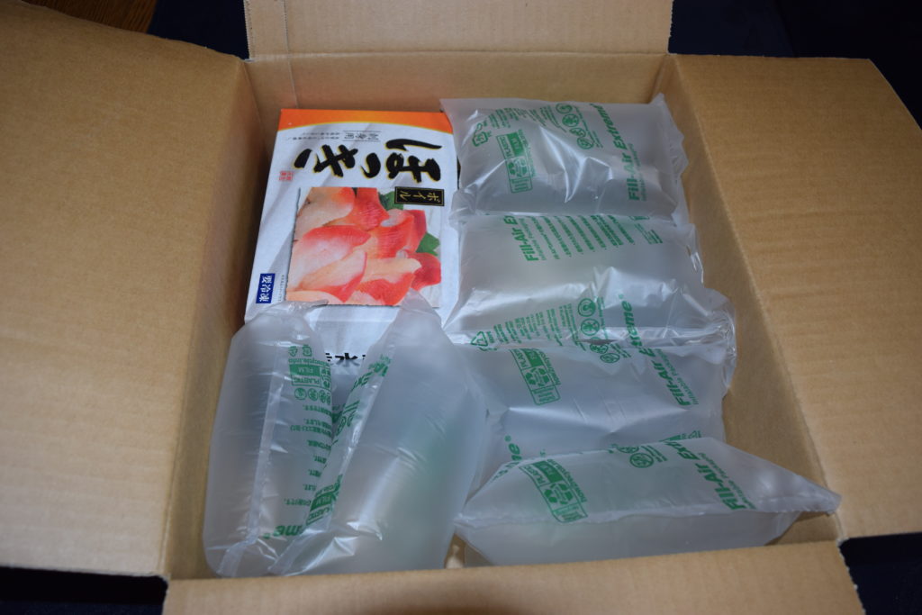 ほっき貝の化粧箱が動かないようにしっかり空気の緩衝材が入っていました。