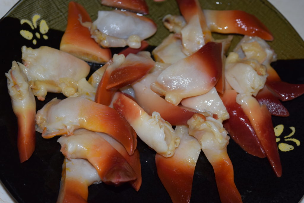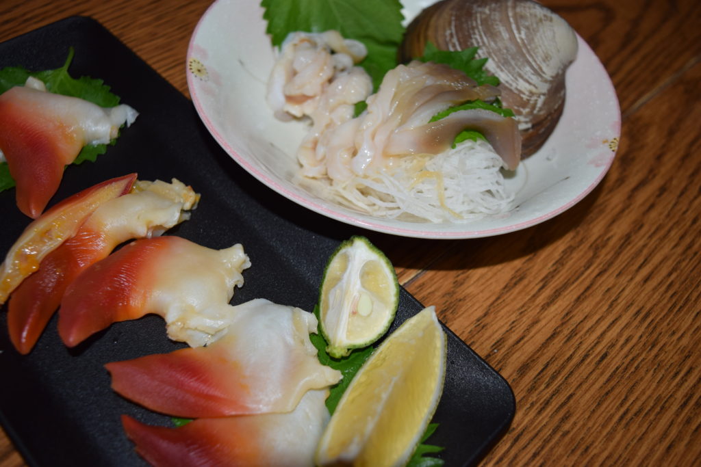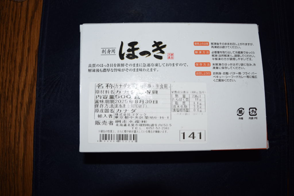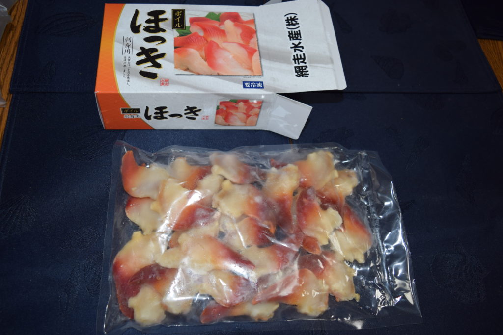 同日、スーパーにて貝の刺身盛り合わせが売っていて、生の北寄貝(ほっき貝)もその中に入っていたので購入しました。