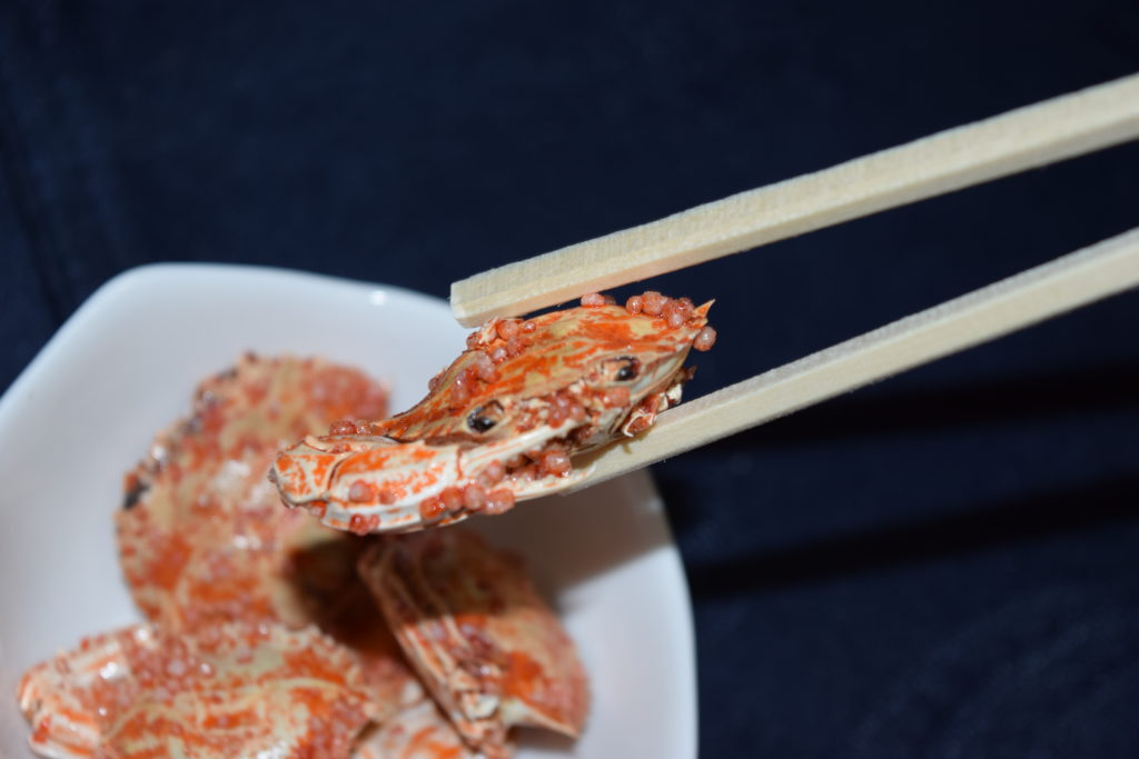 玉子カニ(ガニ)は小さめのカニを殻ごと食べられるシーフードスナックです。