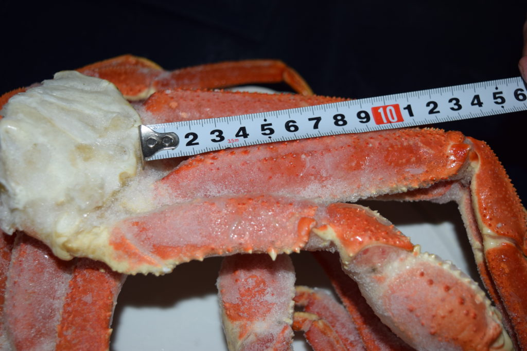 以前水産会社に勤めていた知人から教えてもらって特大と言われるズワイガニ脚をずいぶん食べてきましたが、それに匹敵するか、もしくはそれ以上の大きなサイズ感でした。なにせ脚が太い!