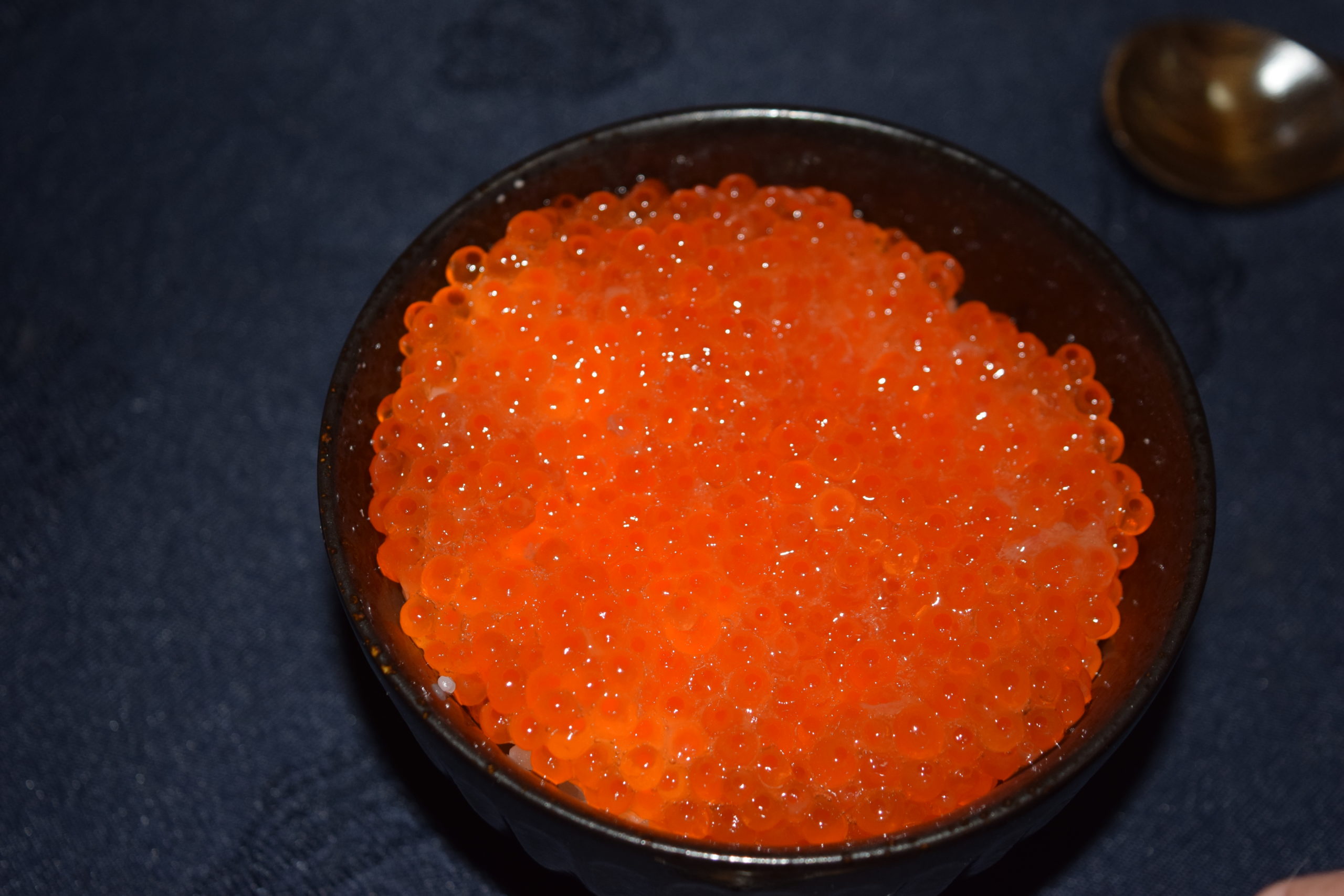 以前実食した北海道産の鮭いくらはとてもさっぱりした味わいで美味しかったですが、この北欧サーモンいくらは、小粒ですが脂がのっていて味が濃い感じです。