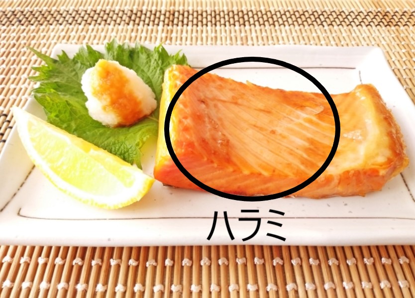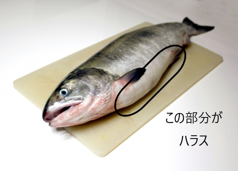 鮭(サケ)は普通の身以外にも、ハラス(鮭ハラス)という名称の部位があります。